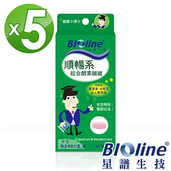 【BIOline星譜生技】順暢系-綜合酵素纖維5入(10錠-盒x5)